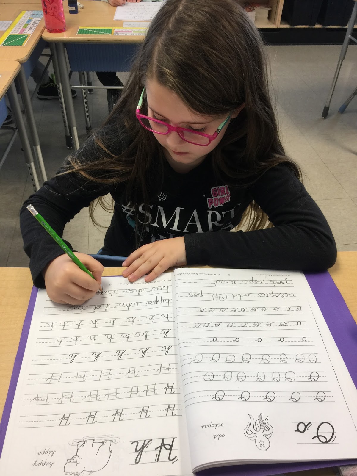This week we completed 2 more cursive letters in our handwriting book ~ Oo and Hh. The students have now been taught the proper formation for 15 of the 26 alphabet letters. They have learned Aa, Dd, Gg, Qq, Cc, Ii, Uu, Ww, Tt, Jj, Pp, Rr, Ss, Oo and Hh.